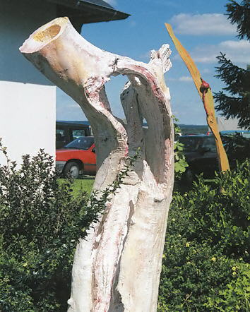 Er hat es geschafft mit seinen Skulpturen der Holzkerb seinen Stempel aufzudrücken. Wenn es in Ellern und zunehmend auch darüber hinaus, nur noch wenige Haushalte ohne Holzpilze, Holzschweinchen, Holzvögel, Holzbären, Holzbänke, -tische, usw. gibt, so ist dies nicht zuletzt auf dessen wirken zurück zu führen.